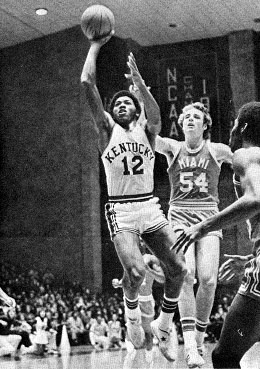 Rick Robey (#53) is sandwiched between Miami's Mike Kearney (#54) and Archie Aldridge (#44)