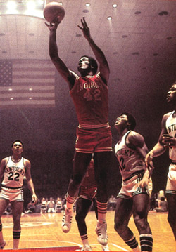 Scott May scores in front of Larry Johnson and Reggie Warford