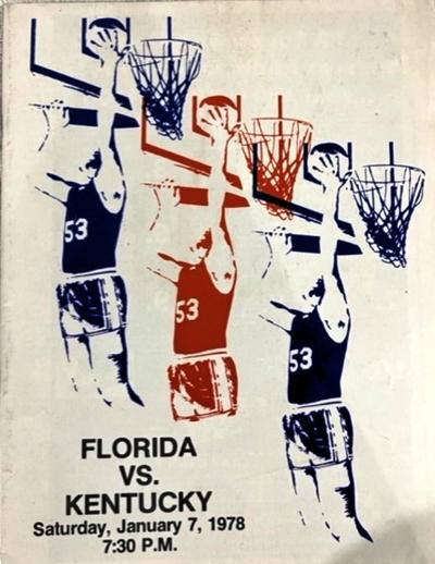 Florida's Ric Clarson drives past Kyle Macy (#4)