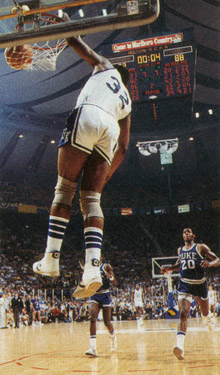 The next trip down, Givens fumbled the ball in the lane but recovered to put in a jumper over 6-foot-11 Mike Gminski, who missed from underneath at Duke's end.