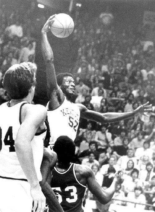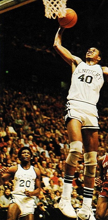 Fred Cowan (#40) dunks while Dwane Casey (#20) looks on