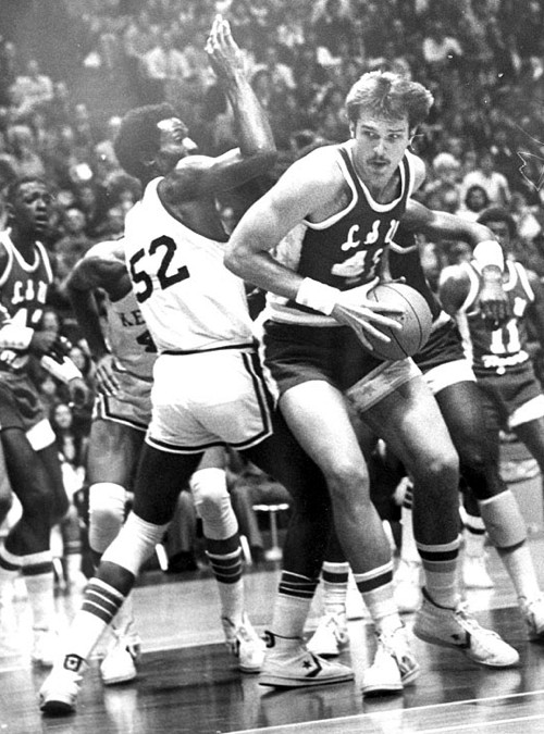 LSU's Rick Mattick puts a move on Kentucky's LaVon Williams (#52)