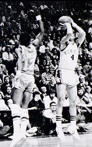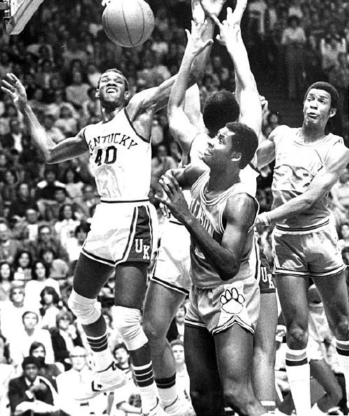 Kentucky's Fred Cowan battle Bob Fuzy (#5) and Larry Nance (#22) from Clemson