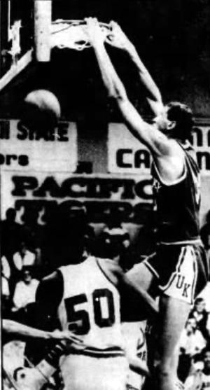 Sam Bowie grabs a rebound over Bradley's Eddie Matthews