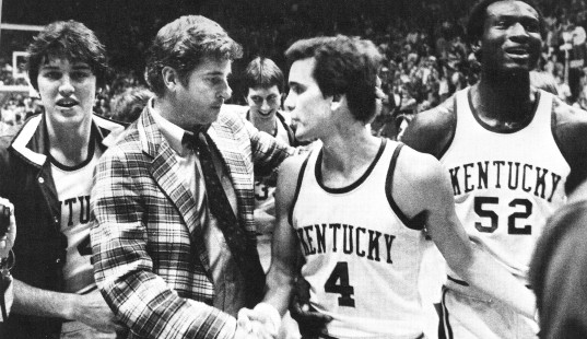 Indiana Coach Knight congratulates UK senior and Indiana native Kyle Macy