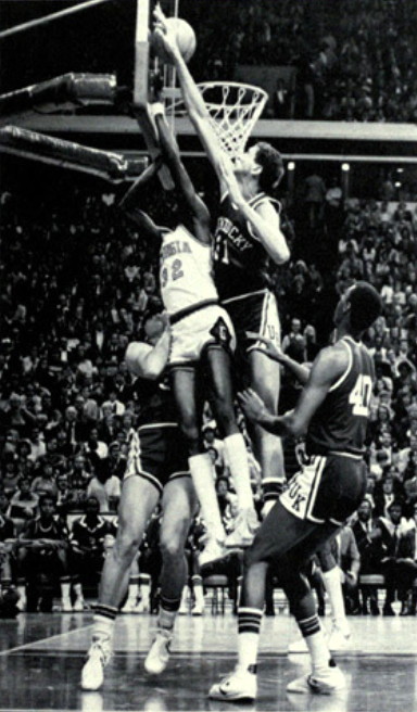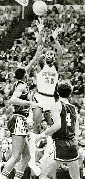 Georgia's Terry Fair (#35) shoots over Kentucky's Freddie Cowan while Kyle Macy (#4) looks on.