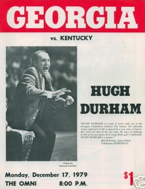 Georgia's Eric Marbury (#3) attempts a reverse while defended by UK center Sam Bowie