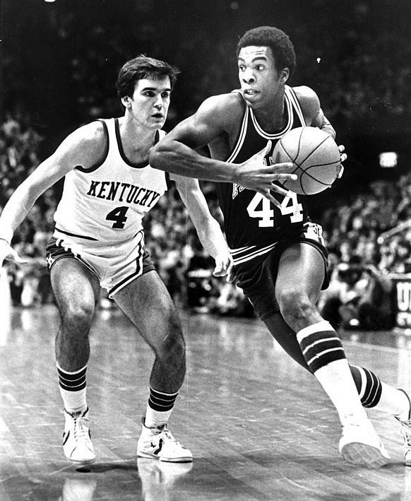 Alabama's Mike Davis (#44) puts a move on Kyle Macy (#4).