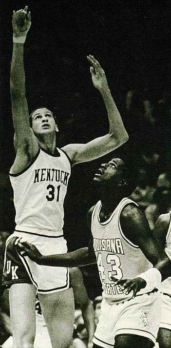 Sam Bowie (#31) and LSU's Greg Cook (#43) both look to the ball