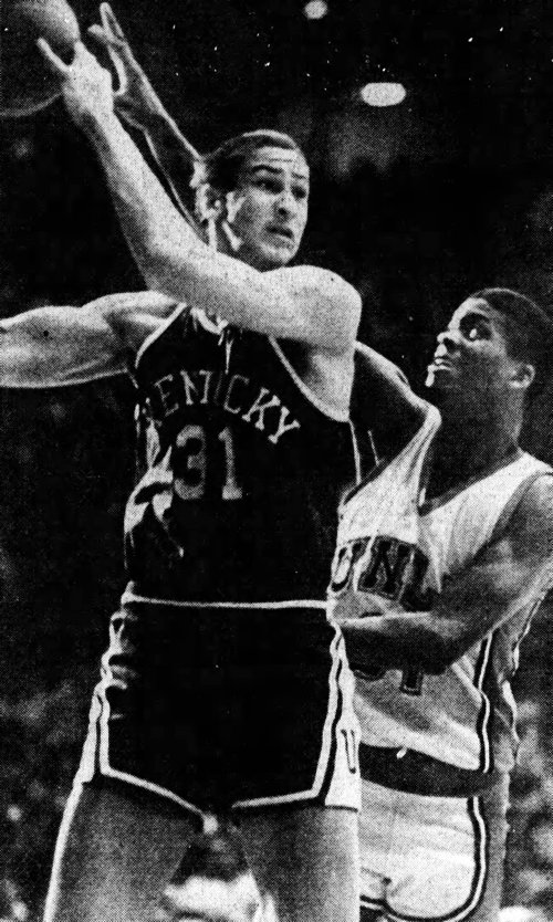 Sam Bowie (#31) holds the ball away from UNLV's Sidney Green