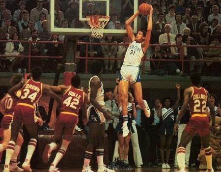 Florida State's Elvis Rolle fights UK's Charles Hurt under the basket while Dirk Minniefield and Sam Bowie look on