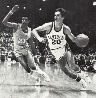 Melvin Turpin (#54) defends while Fred Cowan (#40) looks on