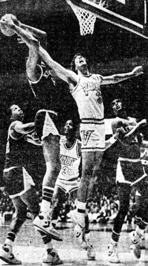 Melvin Turpin is fouled by Vanderbilt's Ted Young