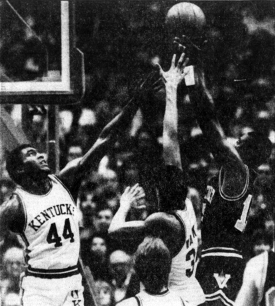 Vandy's Bobby Westbrooks shoos over Kenny Walker (#34) and Charles Hurt (#44)
