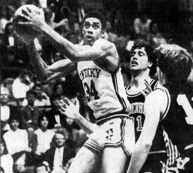 Kenny Walker (#34) grabs a rebound between Vandy's Ted Young and Al McKinney