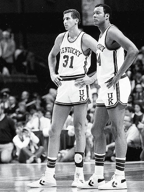 Sam Bowie (#31) and Melvin Turpin (#54) take a break from the action