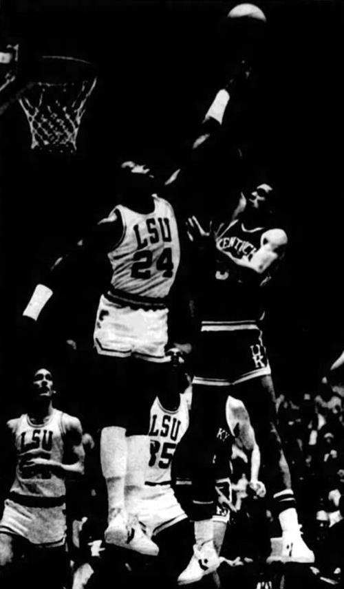 Kenny Walker shoots but is fouled by LSU's Leonard Mitchell (#24)