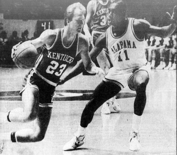 Roger Harden (#23) drives around Alabama's Eric Richardson (#11)