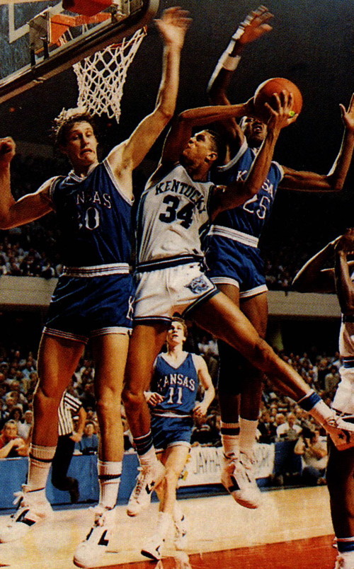 Rob Lock (#44) shoots over Kansas center Greg Dreiling