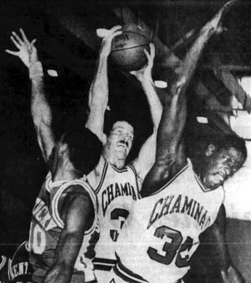 Kenny Walker (#34) rises above Chaminade's Francis Fletcher (#32) and Marty Moore