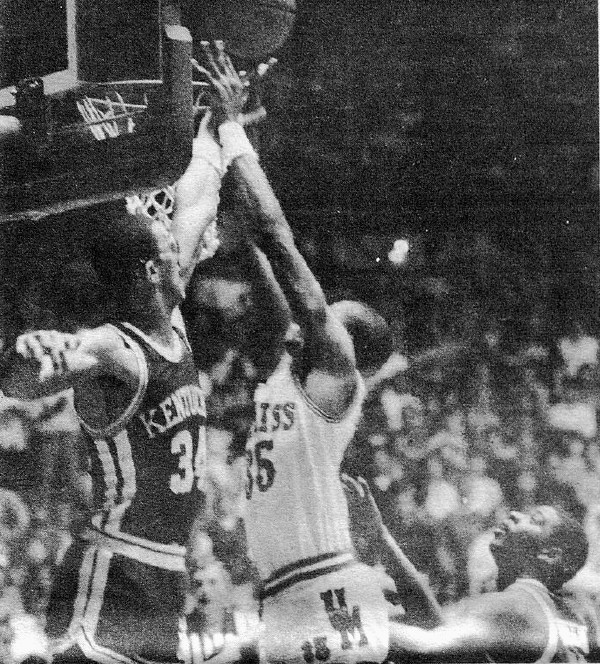 Kenny Walker (#34) defends the rim against Mississippi's Ronnie Sims (#35)