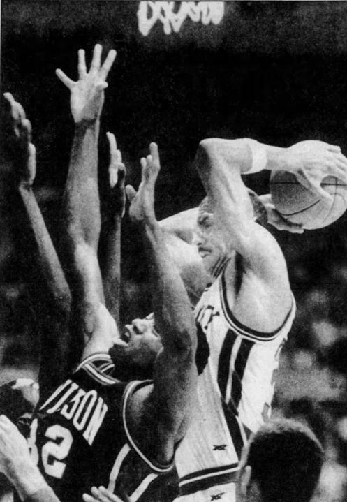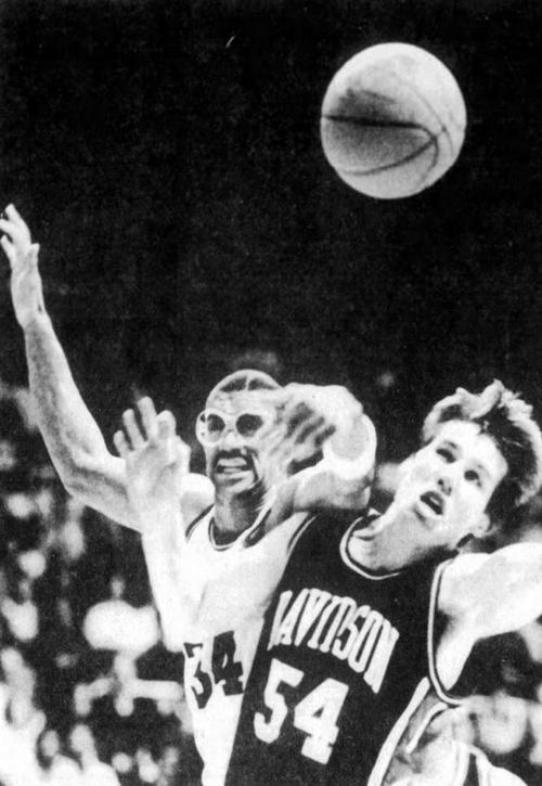 Kenny Walker fights Davidson's Jim McConkey (#54) for the ball