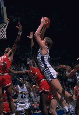 Richard Madison (#42) grabs the rebound while Steve Bruce (#20) looks on