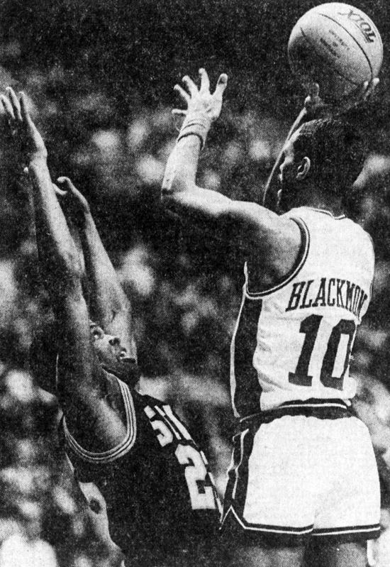 James Blackmon (#10) shoots over MSU's Robert Woodward