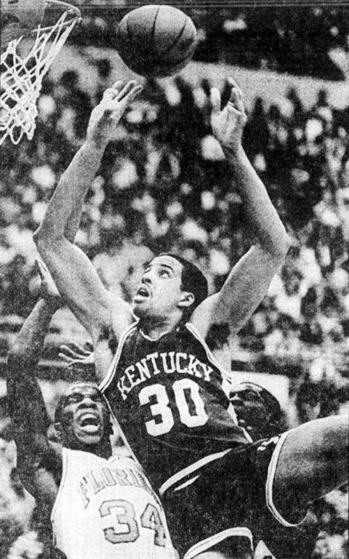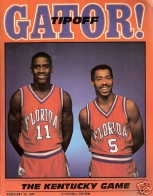 Ed Davender (#15) works against Florida's Vernon Maxwell