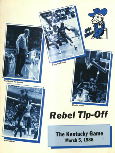 Ole Miss center (#21) dunks ahead of the defense of Rob Lock (#44)