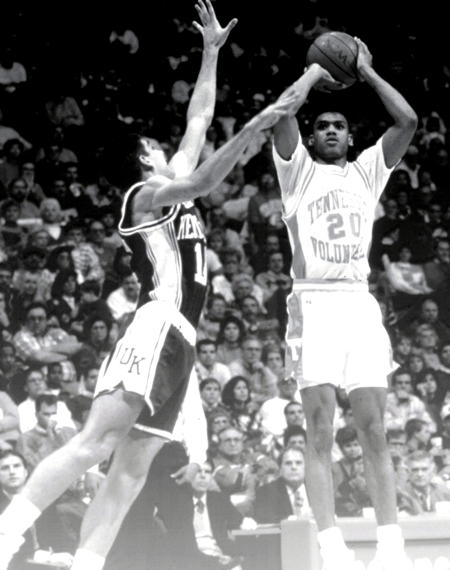 Jamal Mashburn fights Carlus Groves of Tennessee for the ball as Reggie Hanson (#35) looks on