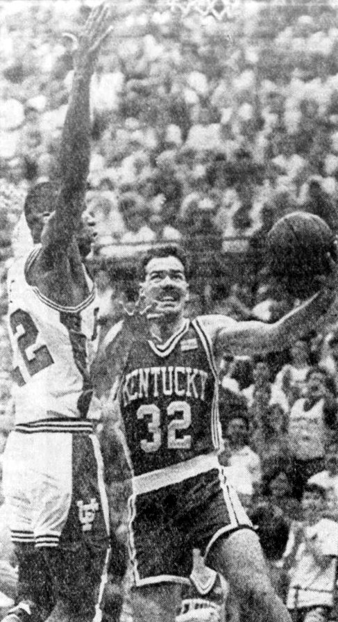 Richie Farmer (#32) attempts a shot past Florida's Stacey Poole
