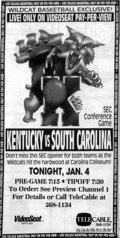 This game was only available on TV via pay-per-view from Telecable in Lexington and Storer Cable in Louisville for $19.95