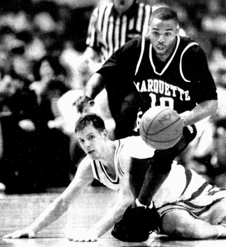 Arizona Coach Lute Olson was asked by Marquette Coach Kevin O'Neill how to break Kentucky's press. Olson told O'Neill to instruct his point guard (Tony Miller) to dribble directly at the big man in any 2-man UK trap. Miller managed to do this the entire game, rendering the trapping press much less effective than it usually was.