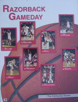 It was yet another "close but no cigar" game for the Cats as they fell to the Arkansas Razorbacks at Bud Walton Arena 94-92 in a well played, close contest. Billy Packer made the stunning prediction that UK and Arkansas probably would be meeting in the NCAA title game early in the telecast.