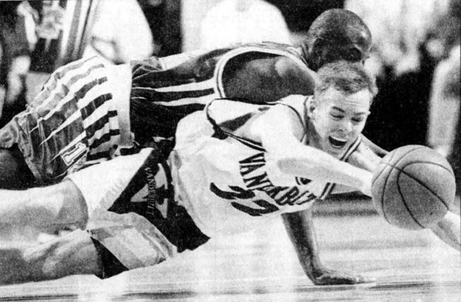 Vandy's Frank Seckar tries to secure a loose ball ahead of Rodrick Rhodes