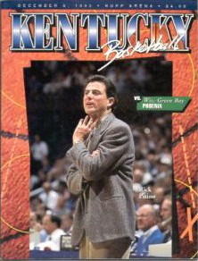 Wisconsin-Green Bay's Eric Jackson (#12) looks to pass while being trapped by Tony Delk and Walter McCarty (#40)