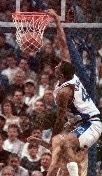 Jamaal Magloire dunks over a hapless defender
