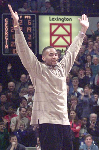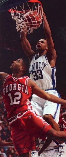 Ron Mercer (#33) dunks over G.G. Smith (#12)