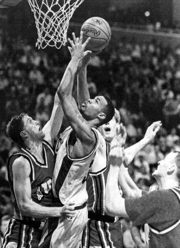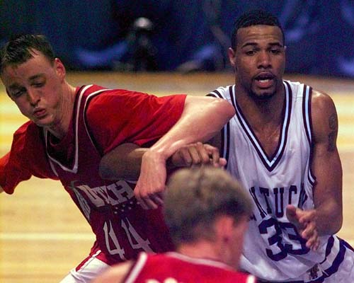 Ron Mercer (#33) checks Utah's Keith Van Horn (#44)