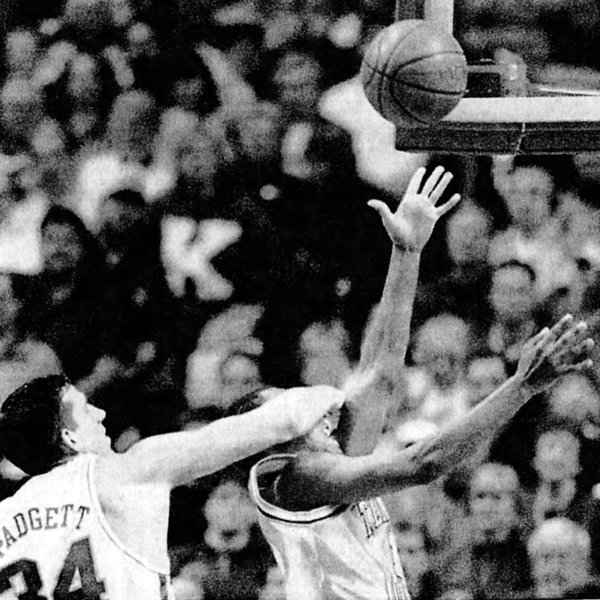 Scott Padgett (#34) fouls Tennessee's Rashard Lee on a layup attempt