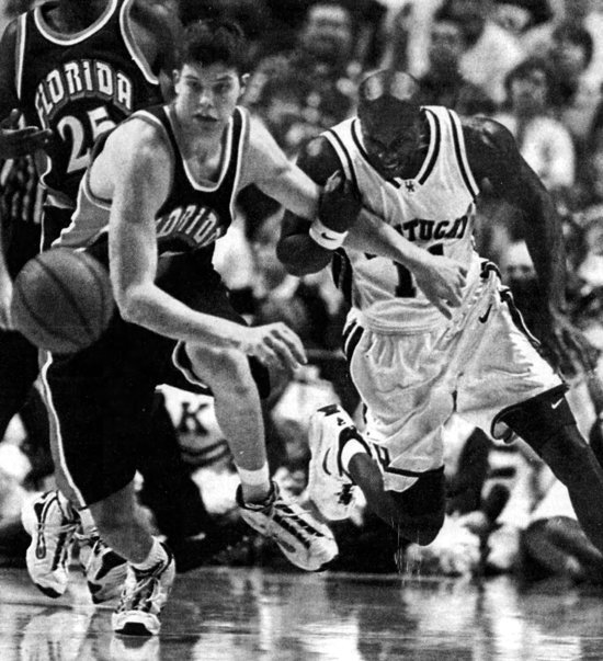 7th ranked Kentucky annihilated the Florida Gators 93-58 in Rupp Arena, in a game televised by Jefferson-Pilot. It was the worst defeat for Florida since the Cats pulverized them 102-48 in Rupp on Jan 21, 1981. In doing so, UK avenged a rare Rupp Arena loss to the Gators last season.