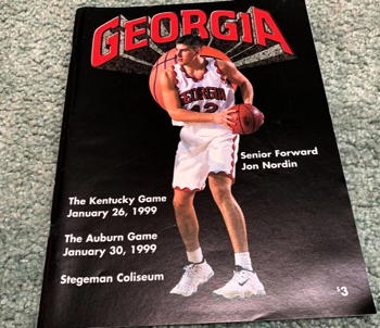 The Wildcats began to build a bit of a lead in the 2nd half, spurting out to a 56-47 lead on the strength of a Padgett breakaway dunk, a Bradley putback, a Padgett layup, an Allison lob to Bradley, and an Evans 16 footer. Despite a GG Smith 3, Bradley drove to the basket nicely for a 58-50 edge. After Turner made an old- fashioned 3, UK led 61-50 and seemed to have things under control. But the Georgia players, frustrated at losing 3 in a row on the road and defending a 13 game home court winning streak, went to work. Jones made a basket inside, then Layne had a fingerroll shot, and after Jones dunked a Chadwick miss, the score stood at 61-56 UK and the Bulldog crowd got back into it. Magloire hit a wide open 15 footer (no doubt UGa did not expect such a shot) , but GG Smith got another 3 to close the gap to 63-59. It was closed even further after a Layne 3 with about 8 minutes left in the game. Bradley was fouled (supposedly - the replay showed him hooking Nordin, who nearly got a technical after complaining) and made 1 FT for a 64-62 UK edge. Jones got a dunk to tie the score, then Evans tipped in an Allison miss. Jones and Chadwick combined to give Georgia a 68-66 lead with about 4.5 minutes left. Saul Smith hit 1 of 2 FT attempts, then Turner nailed a 15 footer for a 69-68 Cat lead. Padgett got a basket underneath for a 71-68 edge with 2 minutes remaining. But Jones made a FT, and Layne hit a 3, for a 72-71 UGa margin with a minute left. Turner tied the game on a FT, and with 36 seconds left, Georgia prepared to take the last shot of the game (calling timeout with 30 seconds left). After burning the clock down to about 5 seconds, Jones got the ball and tried to drive but was cut off by Padgett. Jones put up a shot anyway, which rimmed in and out to the sighs of the large number of Wildcat fans in the audience [JNB note - blush!].