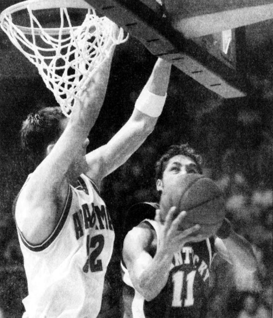 After Doc Martin made a 3 to tie the score at 56-56 with a little over 2 minutes remaining, Padgett had a putback shot to complete the Kentucky scoring, at 58-56 Wildcats. UK was up 58-57 in the 2nd half when Magloire blocked a shot by Haginas. Smith saved the ball from going out of bounds, but Haginas got it, and raced unmolested to the basket for a dunk and the lead with 23.8 seconds left. With 18.9 seconds remaining, UK called a timeout. When play resumed, Wayne Turner tried to drive down the left side of the lane. But he lost the ball in a collision with center Jeremy Hays. TV announcer Bob Kesling said of the Turner-Hays collision, "Turner got hammered. They didn't call it." Jones grabbed the loose ball, who threw the ball to Haginas, who scored and was fouled by Smith. UK had 8.6 seconds left but could not score.