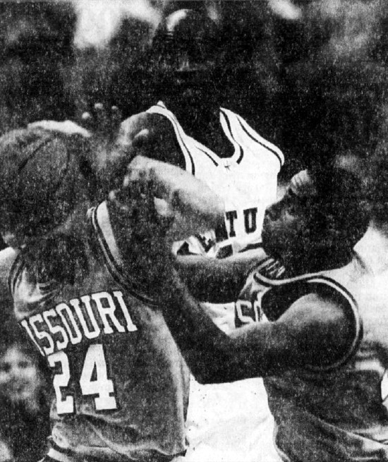 Missouri opened the first half impressively and took the lead twice, the last lead coming at 34-33 at the 16:00 mark. But Kentucky's superior athleticism and big front line wore down the Tigers and Kentucky began to build its lead.