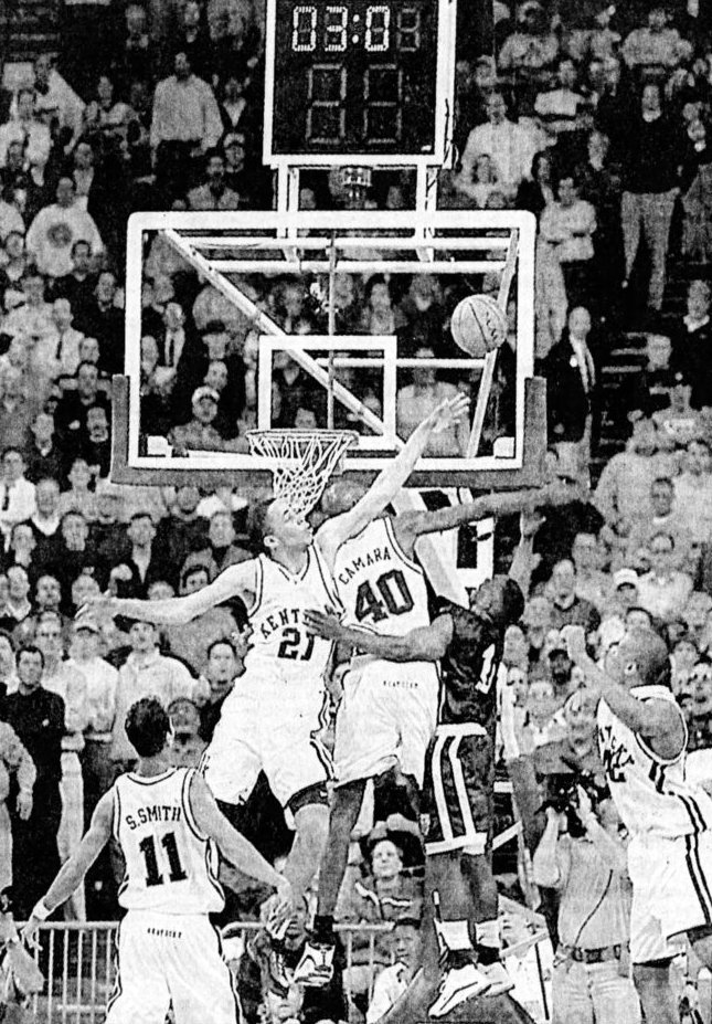 In order to reach that matchup --- featuring the two teams that played for the 1996 NCAA championship in the Meadowlands --- Kentucky needed a career performance by Tayshaun Prince. The sophomore forward was 5-of-6 from 3-point range, including a 23-footer with :07 left to send the game into overtime, on his way to 28 points.