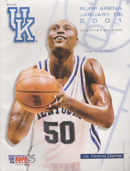 Erik Daniels, Tayshaun Prince and Keith Bogans combined scoring efforts to expand the lead as Kentucky built its lead to 64-50. Notre Dame would manage to pull back to within seven points at 71-64. However, Gerald Fitch would hit his third three pointer and Estill and Bogans would score. "Keith was missing early," Coach Smith said, "but when he saw how well the bench played, he really wanted to get back in there. So, he entered the game in the second half with some fire." Four Fitch free throws would ice the game for the Cats, and UK walked away with its 6th straight win, 82-71. Both UK and Notre Dame are now 9-5 on the season.
