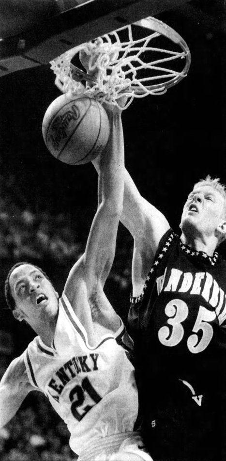 But back came the Dores on the strength of their dangerous 3-point shooting, which was magnified by Kentucky's continued struggles to defend the perimeter. In a five-minute stretch, Vandy drained five treys, including a four-point play by Freije. The Dores also hit 10 of 10 free throws in the run to pull within 58-56 at the 9:05 mark.