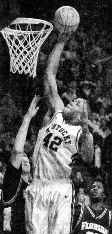 Lexington, KY -- When the final horn sounded there was little doubt who would be the player of the game, Tayshaun Prince. Prince scored 19 points for the Kentucky Wildcats, but no basket was bigger than the one he hit with the Wildcats down 69-70 and time running out. Prince was able to score despite being blanketed by Florida senior Brent Wright. As Prince drove from the wing he first went left, but Wright was there. Prince shifted his weight and drove right, but Wright was there. Finally Prince went left again, Wright was still there, but with the clock ticking Prince rose and flipped in a left handed shot that found the basket with 3.3 seconds remaining.