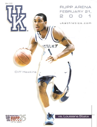 Jason Parker got the opening tip and the Cats opened the game with a pair of threes, springing out to a quick 6-0 lead. Jason Parker would make his presence felt early with two quick buckets, the latter an old-fashioned three-point play. The Cats, coming into the game as big favorites, could never stretch the lead beyond eight in the first half, however. And with Kentucky up 27-20 at the 6:09 mark, the Tigers went on an 8-0 run over the next 1:26 to take the lead away from the Wildcats. The go ahead point came on a three pointer by Collis Temple III.